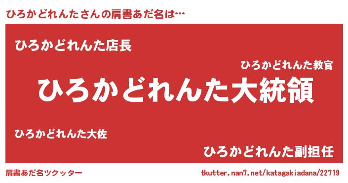 | 意味不明あだ名 | 『ひろかどれんたフォーエバー』 |