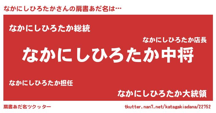 | 女子向けラノベタイトル風あだ名 | 『なかにしひろたかの玉の輿計画!』 |