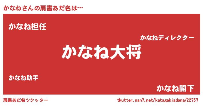| 女子向けラノベタイトル風あだ名 | 『かなねの玉の輿計画!』『かなね恋絵巻』 |