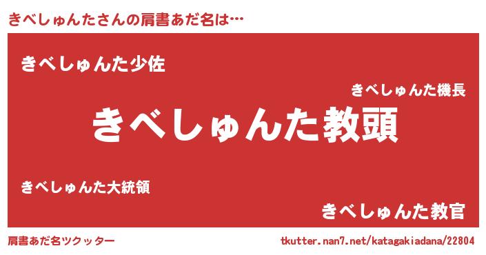 | ヒーロー風カッコイイあだ名 | 『ネオキベシュンタ』『仮面キベダー』 |