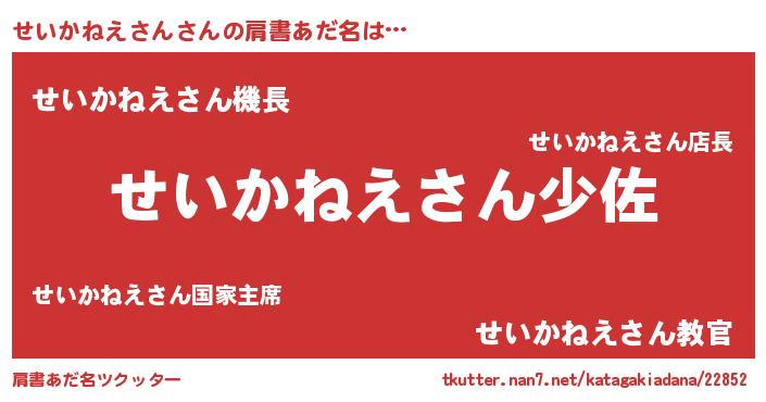 | 男性向けラノベタイトル風あだ名 | 『セイカネエサンスレイヤー』 |