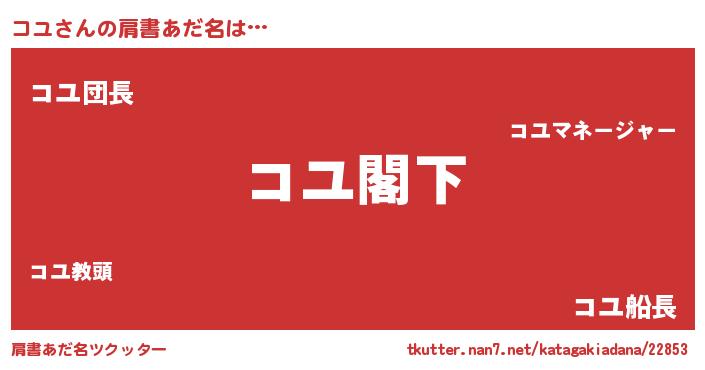 | 意味不明あだ名 | 『自称コユ』『とにかく怪しいコユ』 |