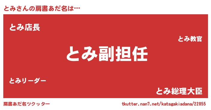 | 男性向けラノベタイトル風あだ名 | 『とみという概念が存在しない退屈な世界 』 |