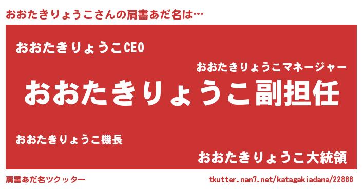 | 男性向けラノベタイトル風あだ名 | 『おおたきりょうこという概念が存在しない退屈な世界 』 |