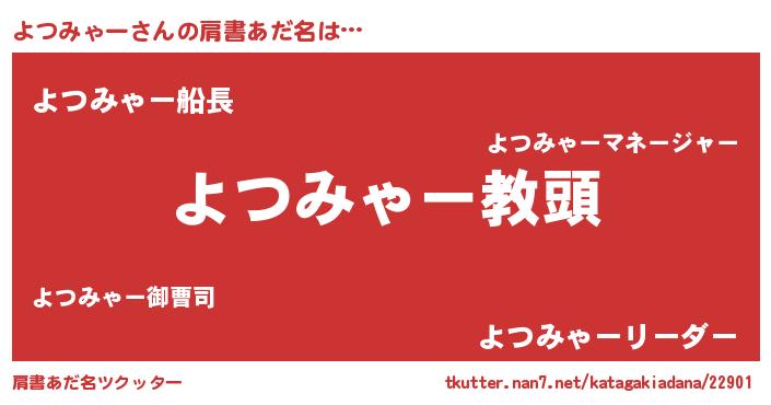 | ヘコむあだ名 | 『よつみゃー(笑)』『よつ太郎』 |