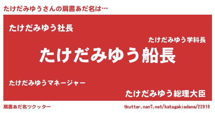 | ヒーロー風カッコイイあだ名 | 『スーパータケダミユウ』『仮面タケダー』 |