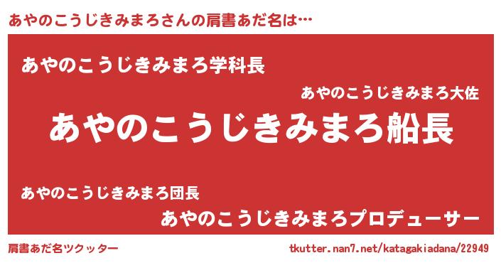| 男性向けラノベタイトル風あだ名 | 『うちのあやのこうじきみまろが世界を掌握している!』 |