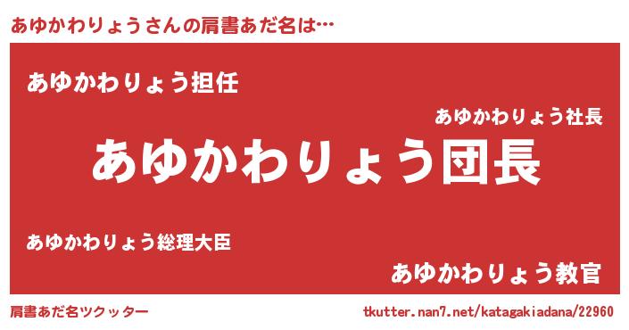 | 女子向けラノベタイトル風あだ名 | 『あゆかわりょうの卵を拾いまして』 |