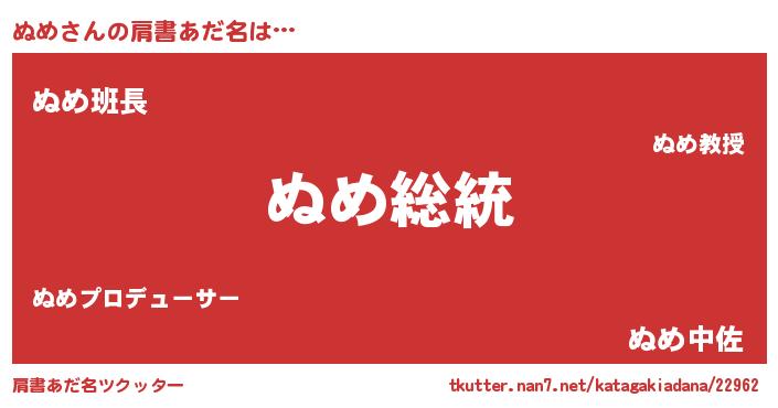 | 男性向けラノベタイトル風あだ名 | 『魔法科高校のぬめ』 |