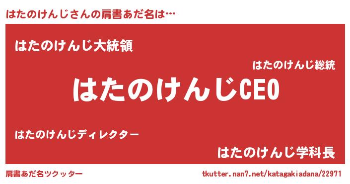| 男性向けラノベタイトル風あだ名 | 『ハタノケンジアートオンライン』 |