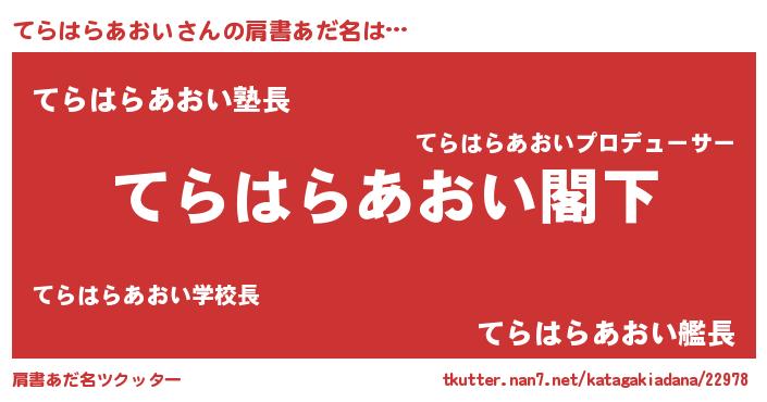 | 意味不明あだ名 | 『自称てらはらあおい』 |