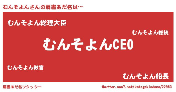 | 男性向けラノベタイトル風あだ名 | 『むんそよんの憂鬱』 |