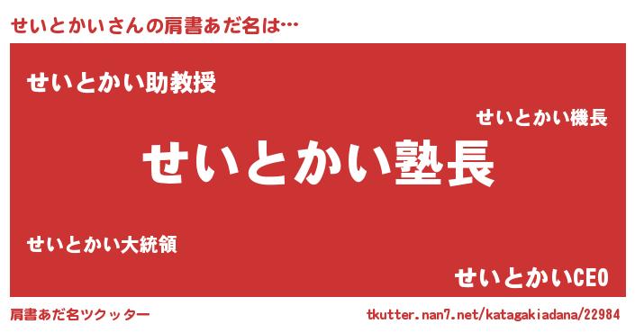 | ポケモン風あだ名 | 『ヒセイトカイ』『セックウザ』 |