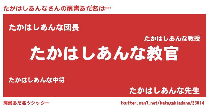 | 男性向けラノベタイトル風あだ名 | 『この素晴らしい世界にたかはしあんなを!』 |