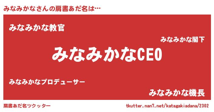 | ヒーロー風カッコイイあだ名 | 『スーパーミナミカナ』『仮面ミナダー』 |