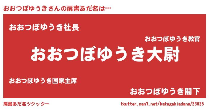 | 男性向けラノベタイトル風あだ名 | 『オオツボユウキスレイヤー』 |