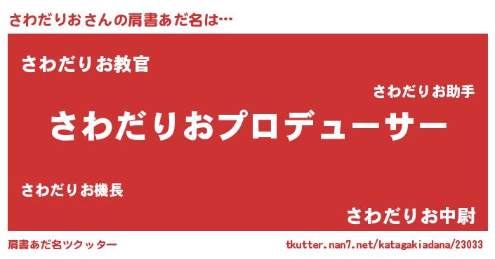 | 男性向けラノベタイトル風あだ名 | 『さわだりおに滅ぼされるだけの簡単なお仕事です』 |