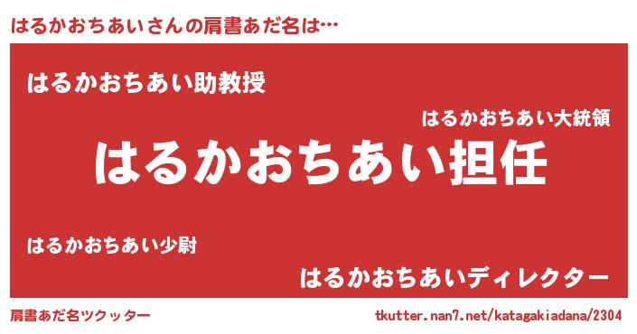| 男性向けラノベタイトル風あだ名 | 『はるかおちあいという概念が存在しない退屈な世界 』 |