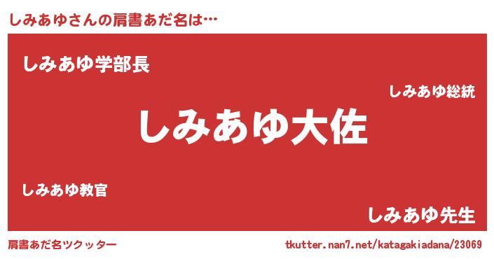 | ヘコむあだ名 | 『しみあゆ(笑)』『しみっふぃ~』 |