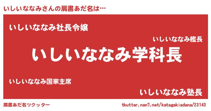 | 男性向けラノベタイトル風あだ名 | 『おまえをオタクにしてやるから、俺をいしいななみにしてくれ! 』 |