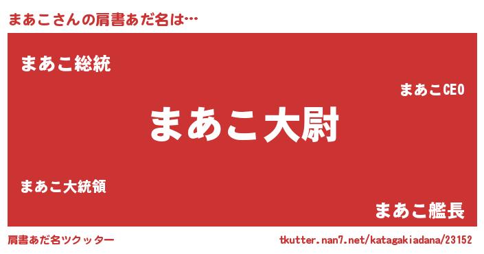 | 男性向けラノベタイトル風あだ名 | 『マアコスレイヤー』『緋弾のマアコ』 |