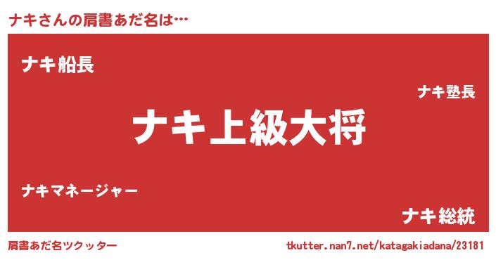 | ヒーロー風カッコイイあだ名 | 『サイバー戦士ナキ』『炎刃騎士ナキ』 |