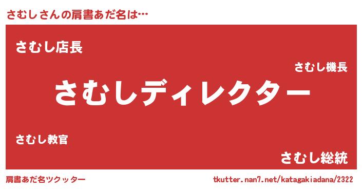 | 欧米人風あだ名 | 『アンジェラ・さむし』『マイケルさむし』 |
