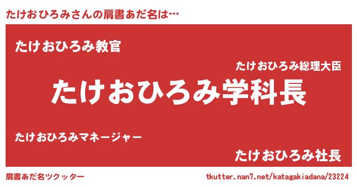| 男性向けラノベタイトル風あだ名 | 『ノーゲーム・ノータケオヒロミ』 |
