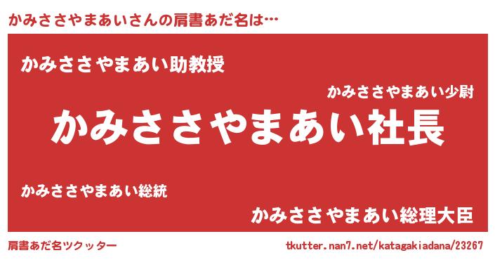 | 男性向けラノベタイトル風あだ名 | 『カミササヤマアイアートオンライン』 |