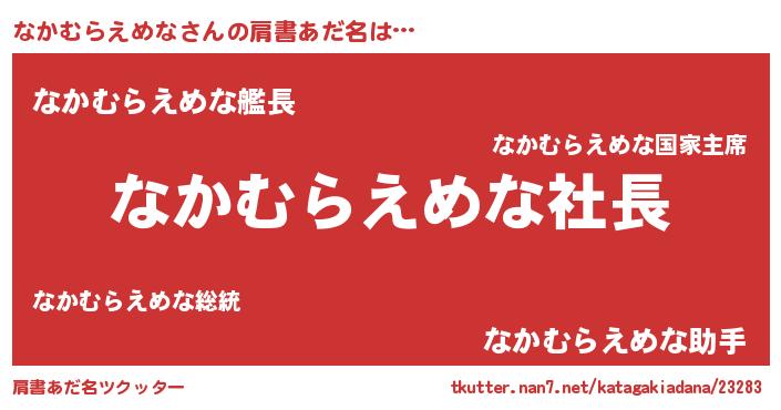 | 男性向けラノベタイトル風あだ名 | 『ナカムラエメナアートオンライン』 |