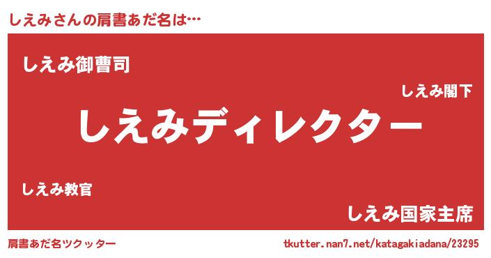 ヘコむあだ名 | 『しえにゅー』『なまこ酢』 |