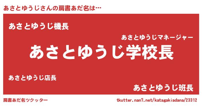 | 男性向けラノベタイトル風あだ名 | 『ノーゲーム・ノーアサトユウジ』 |