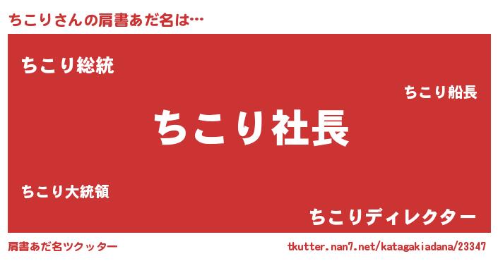 | 男性向けラノベタイトル風あだ名 | 『ちこりの憂鬱』『はたらくちこりさま!』 |