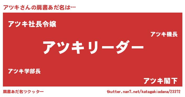 | ヘコむあだ名 | 『アツぷりん』『アツもー』『つくし』 |