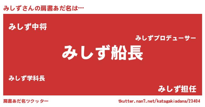 | ヒーロー風カッコイイあだ名 | 『ネオミシズ』『慈愛の使者みしず』 |