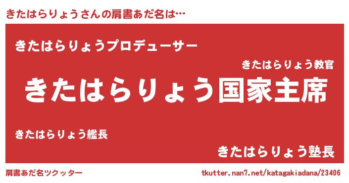 | 男性向けラノベタイトル風あだ名 | 『やはりきたはらりょうの青春ラブコメはまちがっている 』 |