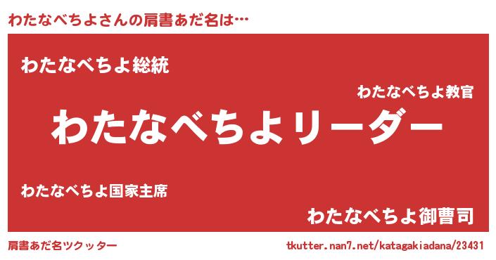 | 意味不明あだ名 | 『とにかく怪しいわたなべちよ』 |