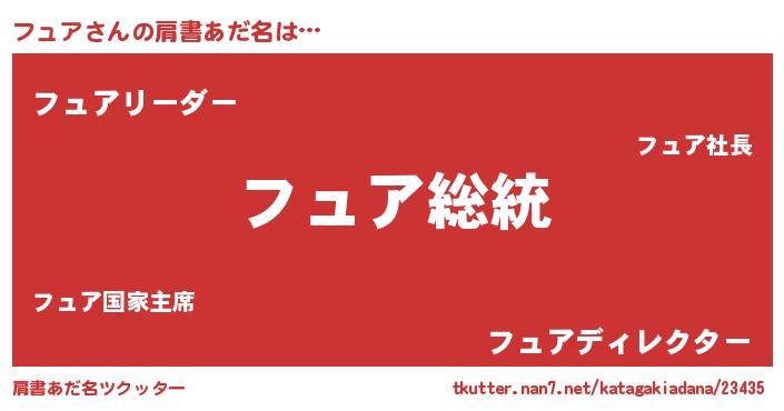 | ヘコむあだ名 | 『フュぷりん』『フュっふぃ~』 |