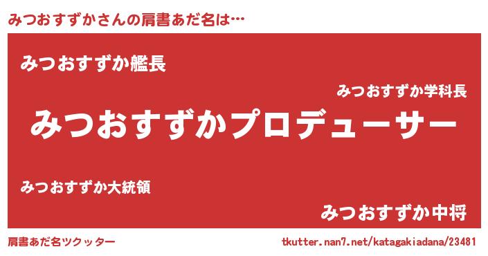 | 男性向けラノベタイトル風あだ名 | 『みつおすずかに滅ぼされるだけの簡単なお仕事です』 |