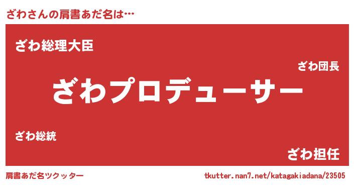 | 男性向けラノベタイトル風あだ名 | 『ざわに滅ぼされるだけの簡単なお仕事です』 |