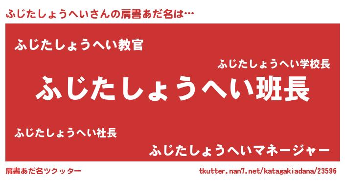 | 意味不明あだ名 | 『とにかく怪しいふじたしょうへい』 |