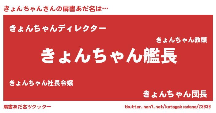 | 女子向けラノベタイトル風あだ名 | 『シンデレラきょんちゃん家の靴箱館』 |
