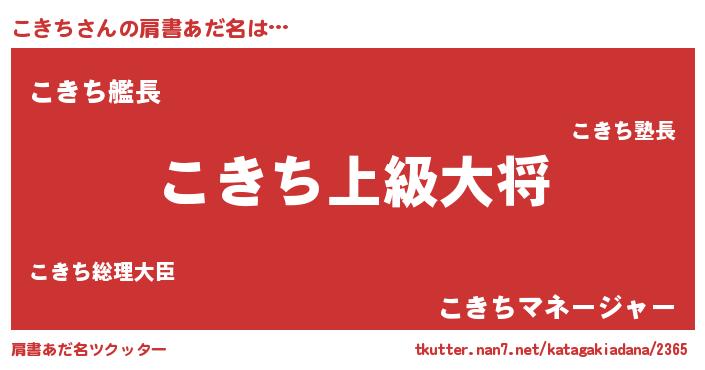 | 意味不明あだ名 | 『なめこ科こきち属』『永久保存こきち』 |