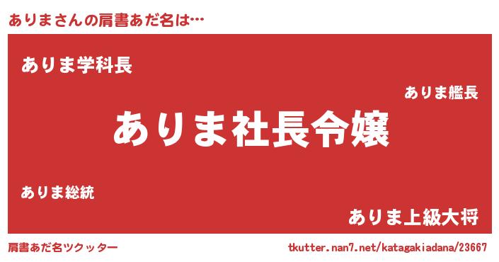 | ヒーロー風カッコイイあだ名 | 『スーパーアリマ』『友情の使者ありま』 |