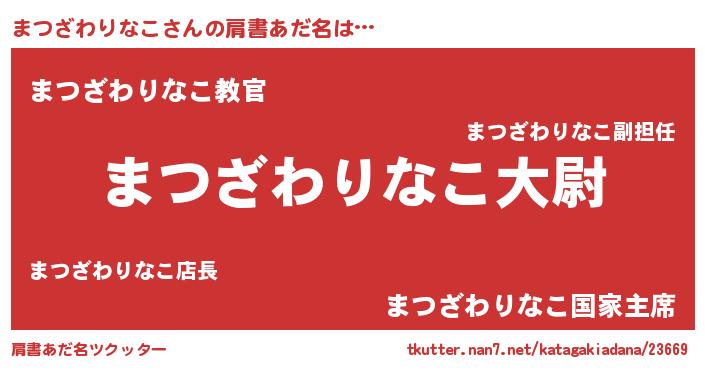 | 男性向けラノベタイトル風あだ名 | 『転生したらまつざわりなこだった件』 |