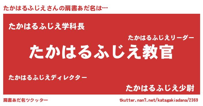 | 男性向けラノベタイトル風あだ名 | 『この素晴らしい世界にたかはるふじえを!』 |
