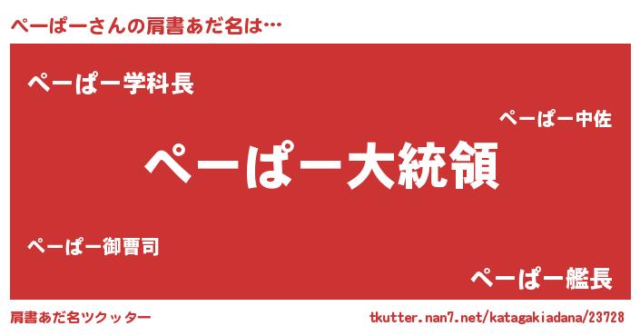 | 女子向けラノベタイトル風あだ名 | 『ぺーぱー伯爵の花嫁』『ぺーぱー恋絵巻』 |