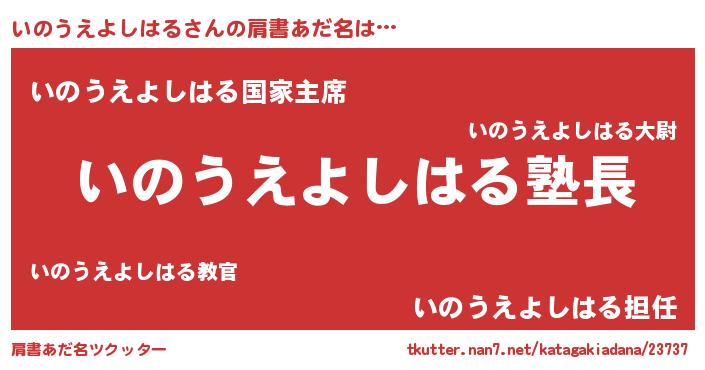 | 意味不明あだ名 | 『とにかく怪しいいのうえよしはる』 |