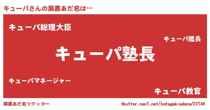 | 意味不明あだ名 | 『とにかく怪しいキューパ』 |