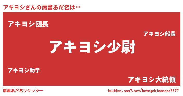 | 男性向けラノベタイトル風あだ名 | 『アキヨシ~年齢イコール彼女いない歴の魔法使い~』 |